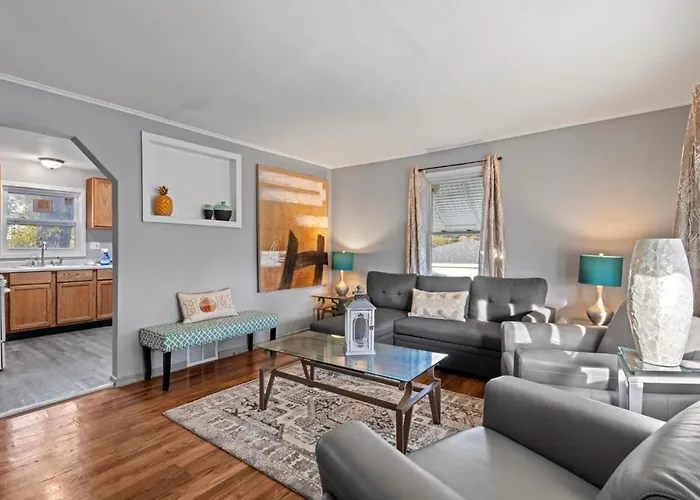 Le domicile de 93 m² est situé à environ 3 km du musée Balzekas de la culture lituanienne, un excellent endroit pour améliorer la sensibilisation culturelle. Le centre de divertissement familial Haunted Trails est situé à environ 15 minutes en voiture de cet appartement Serenity Home Free Parking & Wine.